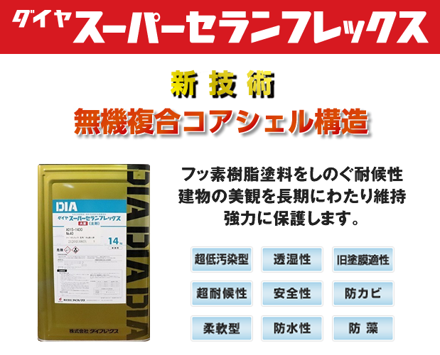 長期間のメンテナンスフリーを実現する強力な皮膜性能など、様々な機能を有する強固な塗料です。